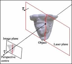 예를 들어 빛의 라인을 물체에 쏘면 물체의 형태에 따라 굴곡이 생기겠죠.