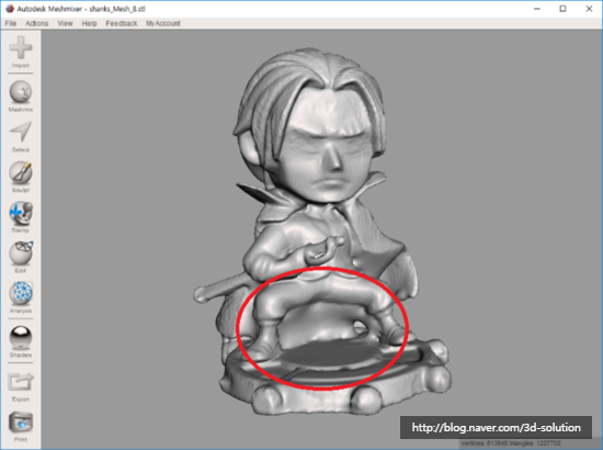 저는 메쉬믹서의 Sculpt 기능을 이용하여 막힌 부분을 처리하였습니다.