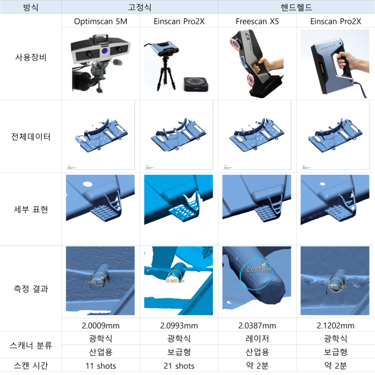 - 장점 : 핸드헬드로도 정밀한 스캔, 대형 제품 스캔에 적합하다.