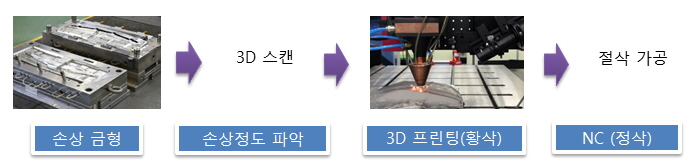 손상된 금형을 3D스캐닝하여 손상 정도를 파악하고,