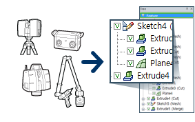사용자는 Geomagic Control X를 통해 3차원 스캐너로부터 획득된 수억 포인트의 점군데이터는 물론 Live Inspect라는 기능을 통해 다양한 접촉식/비접촉식 측정장치로부터 취득한 포인트 데이터를 이용하여 검사 작업을 수행하는 것이 가능합니다.